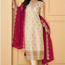 Step into elegance with this exquisitely designed Luxury Embroidered Festive Suit, crafted for the modern woman who appreciates tradition with a touch of glamour. This stunning ensemble features a gold-embroidered cream kurta, paired with matching bottoms and a rich contrasting red dupatta adorned with intricate lace and tassel details. Whether it’s for a wedding, festive occasion, or an evening gathering, this outfit ensures you make a graceful statement.